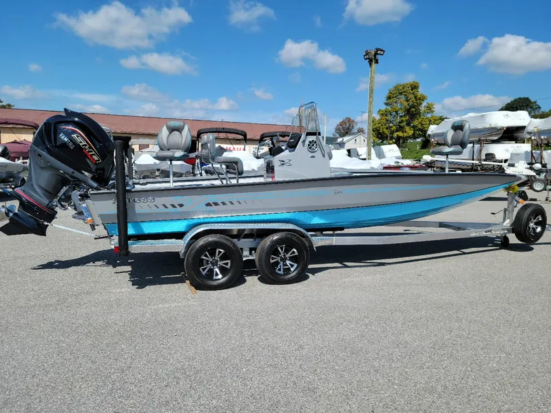2025 H22B, 22' H Bay Center Console with Hyper Lift Hull. Bahama blue bottom/silver sides, silver spray in liner, gray seats. Console painted silver. -Yamaha 200 SHO. -Custom made aluminum Tandem axle trailer with aluminum wheels, brakes on both axles, aluminum spare tire with mount, lighted logo trailer step. -Saltwater trailer package which includes Composite bunk covers, upgraded bow roller. -Xtreme Marsh package which includes. stainless rod holders, stainless cup holders, 6 stainless cleats, stainless steering wheel, stainless leaning post with backrest & footrest, two tone paint, trim on bow, 3 bank battery charger, 6 gauge wire upgrade, trim gauge, water PSI gauge, Livewell timer, auto bilge, upgraded Euro seats, upgraded dash panel w/ stainless switches. -Minn Kota Riptide Terrova,112 lb, 36volt, I-pilot Link trolling motor. -Humminbird Helix 9 Chirp MSI fish finder. -Ethernet cable to connect fish finder & trolling motor. -10' hydraulic jack plate. -Appearance package in Bahama blue which includes matching Seadek, seat stripes, hull side stripes. -Wet sounds radio and 4 speakers. -High Pressure wash down station. -Ladder. -Ulflex hydraulic steering. -Reinforced for T-top. -Lights in livewells, storage & interior. -Jump seat against front deck. -Freight, prep and four 27 series batteriesF & S Yamaha and Marine 1800 Smith Station RdSpring Grove, Pa 17362717-632-6382