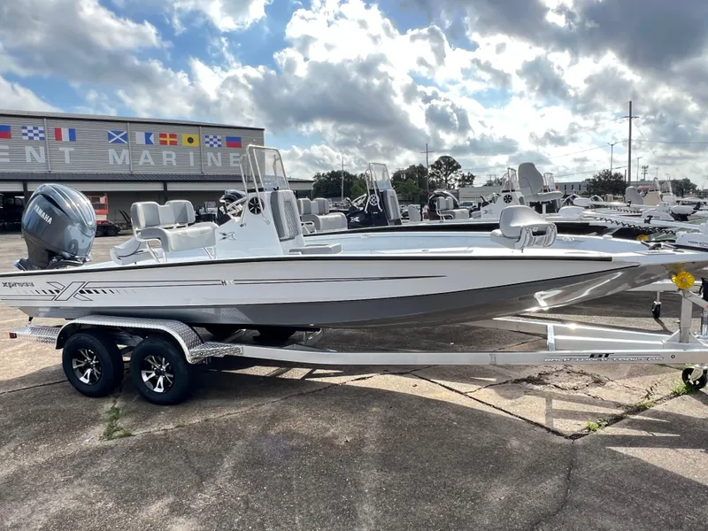 , THE ORIGINAL ALL-WELDED ALUMINUM BOATXpress Bay Boats are one of the most popular lines of bay boats on the market today. Xpress Bay Boats deliver xceptional design and performance, ensuring you a lifetime of xciting memories. Whether it's fresh or salt, an Xpress Bay Boat provides the versatility to make your next trip memorable. Settle for nothing less than the best! XTREME REDFISH PKG-REDFISH PKG,UPG TO RT80,HELIX 9 UPG,2 BANK CHGR,6 GAUGE WIRE UPGXTREME-BAY SS PKG-BAY SS PKG,UPG SS LEAN POST W/BACK&FOOT RESTS,2ADDT'L SS CLEATS MIDSHIPSTEERING -UFLEX HYDRAULIC FOR LC ENGINESALUMINUM WHEEL UPGRADEALUMINUM WHEEL UPGRADE - 2ND AXLECONSOLE - AM/FM RADIO W/ BLUETOOTH & SPEAKERSCONSOLE GRAPH: 94SV W/ GT56UHD (SW MAPS)ENGINE PROP - POWERTECH UPG 19JACK PLATE - 6"SALTWATER TRAILER PACKAGE-COMP BUNK COVERS,UPG BOW ROLLERTROLLING MOTOR - RT 80/WRTROLLING MOTOR - SLIDE BRACKETTROLLING MOTOR - BOW PANEL FOR PLUGTROLLING MOTOR - PLUGTANDEM W/ BRAKE - 1 AXLEBASE COLOR: WHITEBOW PAD - STORM GRAY / BLACKCHARGER - 2 BANKCONSOLE CUSHIONS: FLINTCONSOLE COLOR: WHITECONTOURED LEANING POST BACK - FLINTCONTOURED LEANING POST CUSHION - FLINTFISH SEATS (2) - FLINTHARDWARE: STAINLESS STEERING WHEEL, FOLD DOWN DECK CLEATS (6),ROD & CUP HOLDERSJUMP SEAT: FLINTPAINT - 2 TONE UPG FROM STANDARDSEAT COLOR: FLINTSEAT - STAINLESS LEANING POST WITH BACKREST UPGRADEWIRING - 6 GAUGE TM HARNESSWIRING - TRIM ON BOWXCLUSIVE GRAPHICS: SILVERACCENT COLOR - SILVER BOTTOM