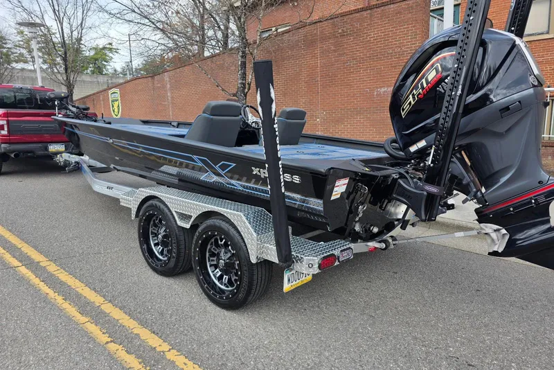 -Xpress aluminum trailer. 6" frame Xtreme trailer package which includes tandem axle with brakes one axle, 18" aluminum wheels, tandem fenders, heady duty jack stand, flush mounted tail lights & back up lights, ratchet tie downs, SeaDek fender pads, lighted logo trailer step. 18" aluminum spare & mount.