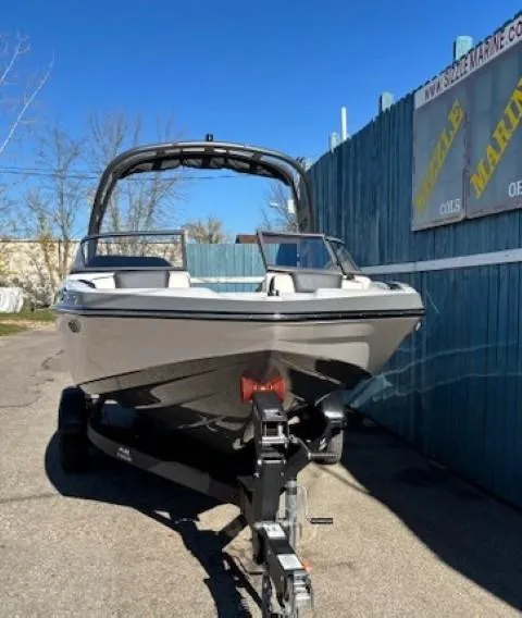 Single 1.8L SVHO Yamaha Engine, 250 HP ** 8 person capacity ** Full mooring cover ** Bow filler cushions ** Hinged seats ** Under seat storage ** Quiet cruise technology ** Snap in teak style marine mat ** Wakeboard tower w/bimini top ** Diver flip up driver seat bolster ** Passenger side bucket seat ** Tilt steering wheel ** Docking lights ** Removable table ** Removable cooler ** Cruise control ** No wake mode ** Depth finder ** 7" Connext touchscreen w/GPS maps ** AM/FM/BT stereo w/ stern radio remote ** Articulating keel/rudder ** Vector steering fin ** Single axle trailer w/brakes and swing storage tongue