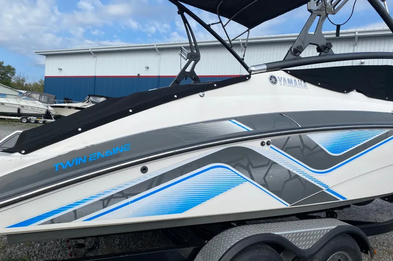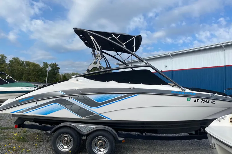 Introducing the 2015 Yamaha Boats 212X, a stunning bowrider that promises an exhilarating experience on the water. With an overall length of 21.17 feet, this vessel is designed for both performance and comfort. Its modified Vee hull, crafted from durable fiberglass, ensures a smooth ride and excellent handling. Powered by twin 1.8L High Output inboard engines with a jet drive configuration, the 212X delivers impressive acceleration and agility, making it perfect for watersports or leisurely cruising. The boat comfortably accommodates up to 9 passengers, allowing for memorable outings with family and friends. Equipped with thoughtful features, this model is designed for ease of use and enjoyment. Whether you're exploring serene lakes or tackling thrilling waves, the Yamaha 212X is ready to elevate your boating adventures. Experience the perfect blend of style, performance, and comfort with this exceptional bowrider. Matching trailer included.