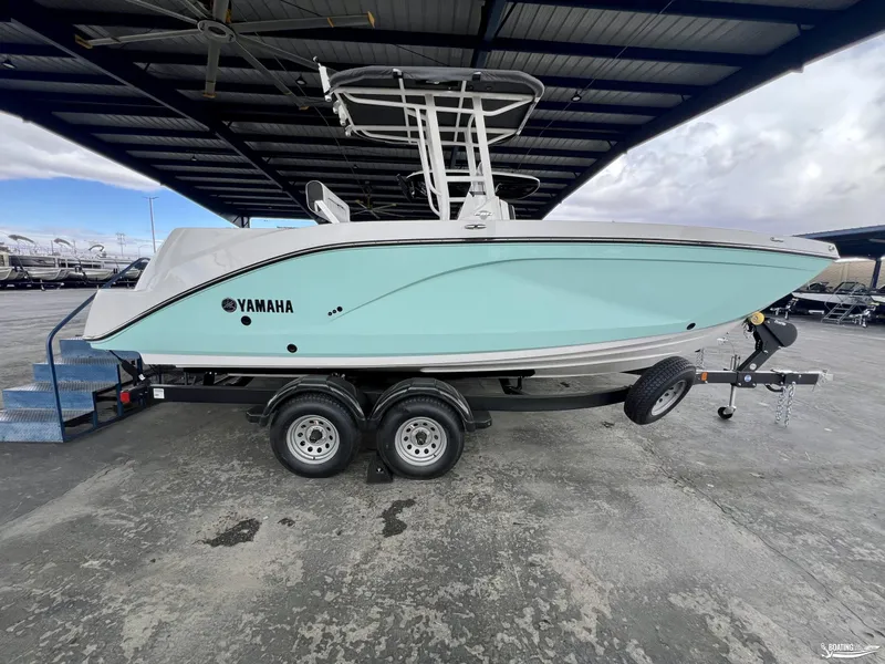 The 2024 Yamaha Boats 222 FSH is a dynamic center console boat ideal for both fishing and family fun. Measuring about 22 feet, it boasts a sleek design and features Yamaha's reliable twin-engine setup for enhanced power and stability on the water. The spacious cockpit and comfortable seating allow for socializing, while the bow area is perfect for relaxation.