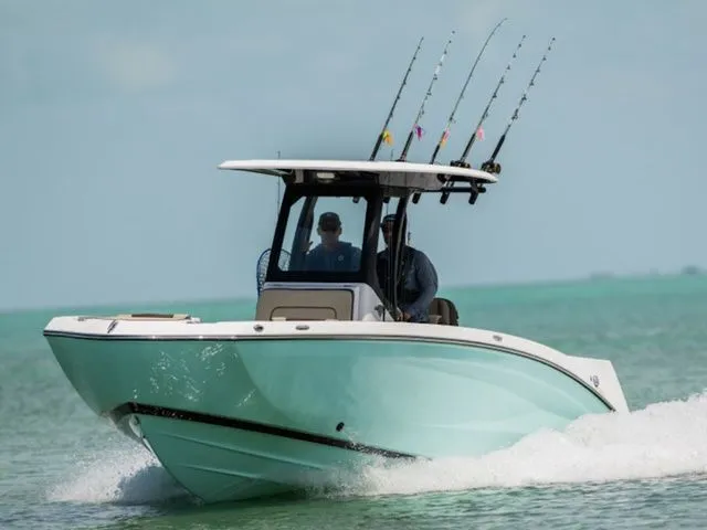 Built for fishing and fun, the 222 FSH Sport E includes a 26-gal livewell, 10 rod holders, a leaning post with tackle storage, and a tow hook for watersports. Its seafoam green or slate blue color scheme adds a modern aesthetic, paired with an aluminum trailer for corrosion resistance.
