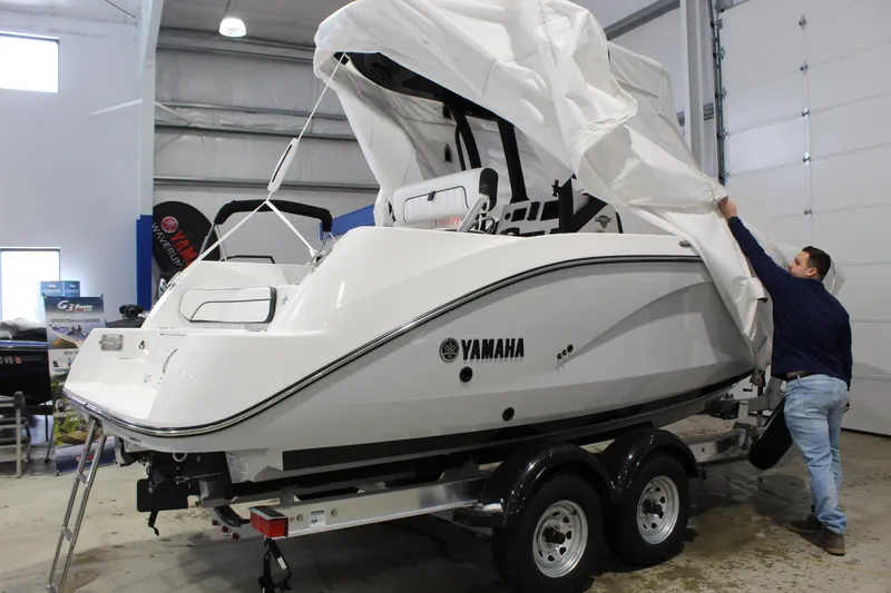 **the Dealership is not Responsible for any Errors or Omissions Made in the List of Standard Features.**, Tilt Steering, Dedicated Anchor and Rope Locker, Cup Holders, Insulated Fish Box, Upholstered Bow Seating with Storage, Storage Pod, Integrated Swim Platform, Upholstered Cushioned Backrests, Stainless Steel Telescopic Reboarding Ladder, Stern (Wet) Storage, Stern Livewell, Integrated Drink Holders, Connext with Touchscreen, Yamaha Drive Control, Throttle by Wire Technology, Push Button Start/Stop, Marine Stereo, 12V Outlet, Marine Speakers, 3 Position "No Wake Mode™" Control, Cruise Assist, Depth Finder, Water Temperature, Fuel Management System, Dual Battery Setup, Rack & Pinion Steering, Quiet Cruise Technology, Articulating Keel System, Simrad Electronics, Compass (in-Dash, Analog), Electric Raw Water Washdown System with 4.5gph, Custom Trolling Motor Mount, Through-Hull Transducer, Hour Meter, Warnings (Voltage, Fuel, Overheat), Reverse RPM Control, Yamaha Marine Engine, Twin 4-Cylinder, 4-Stroke, 1.9 Liter High Output Yamaha Marine Engines, Tow Hook, Stainless Steel Rub Rail, Flush Mount Pop-up Cleats, Stainless Steel Nav Lights on Deck, T-Top with Removable Canvas and Rod Holders (4), Painted Trailer with Swing-Away Tongue, Spare Tire and Mount, Disk Brakes, Lights, Safety Chains, Adjustable Winch Stand with Strap and Hook.