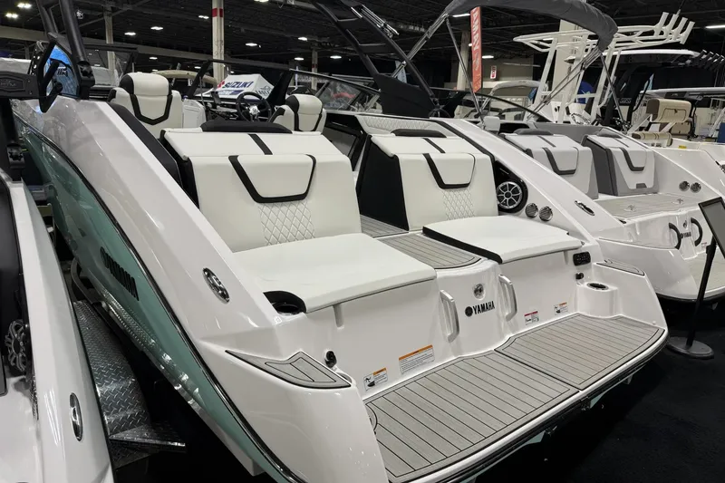 The 222S combines timeless styling, premium refinements, and class-leading performance in an affordable 22-foot package. Snap-in Teak-Style Marine-Grade Mat, Ski Locker, Removable Dinette Table with Pedestal - Mounts at Cockpit and Stern (Feat. Marine Grade Mat), Bow Filler Inserts for Multiple Seating Configurations - 22', Hinged Seat Cushions, Tilt Steering, Upgraded Steering Wheel, Upgraded Upholstery, Adjustable Captain's Chair with Flip-up Bolster, Passenger-Side Captain's Chair, Portside Entertainment Area, Lockable Passenger Side Glove Box, Walk-Through Bow Door, Integrated Removable Cooler, Docking Lights, Courtesy Deck Lighting, Dedicated Anchor and Rope Locker, Bow Reboarding Ladder, Upgraded Aluminum Handles & Accents, Cockpit Drainage System (CDS), Integrated Swim Platform, Upholstered Cushioned Seats, Upholstered Cushioned Backrests w/Storage, 12-Volt Outlet, Stainless Steel Telescopic Reboarding Ladder, Dinette Table Mount, Marine-Grade Mat, Stern (Wet) Storage, Factory Installed Swim-up Seat Bracket, Swim-up Seat Accessory Included, Helm Connext Screen (in) - 7, MFD w/ Maps, Helm Switch Panels - Black, Wireless Charging Points - 2, Marine Speakers - 6, Stern Stereo Remote, Stern Speakers, 3 Position "No Wake Mode™" Control, Cruise Assist, Battery Setup - Dual, Rack & Pinion Steering, Quiet Cruise Technology, Articulating Keel System, Underwater Light, Yamaha Marine Engine - Twin 4-Cylinder, 4-Stroke, 1.9 Liter High Output Yamaha Marine Engines, Displacement (per Engine) - 1898cc, Recommended Fuel - Regular Unleaded, 155 MM High-Pressure Pump, Pump Clean-Out Ports, Bow Rails, Stainless Steel Pop-up Cleats - 6, Tow Hook, Biminitm Top, Aluminum Folding Wakeboard Tower with Tow Hook, Windshield Mirror, Painted Trailer with Swing-Away Tongue, **the Dealership is not Responsible for any Errors or Omissions Made in the List of Standard Features.**