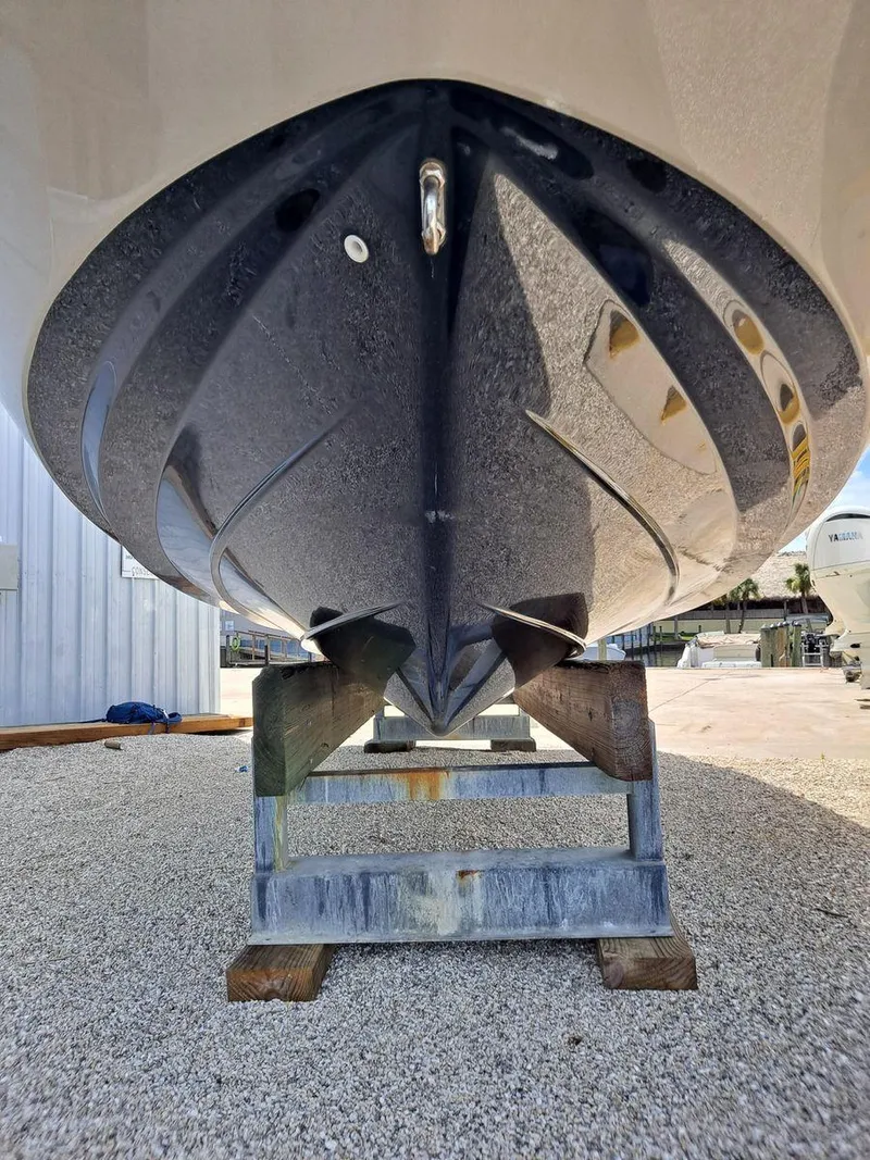 The boat also offers easy access from the bow thanks to the deck boat-style ladder, making it ideal for getting in and out of the boat. The hull shows no signs of beaching, indicating it has been well cared for.