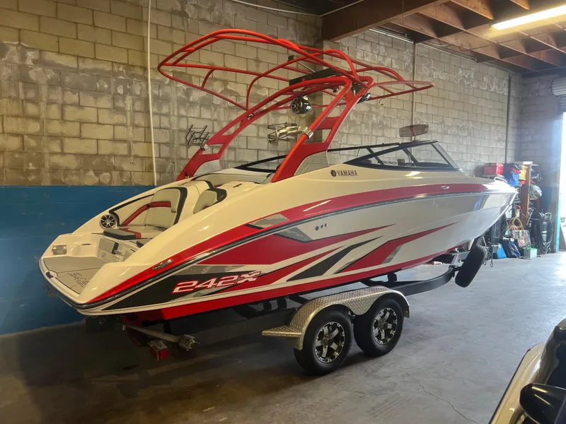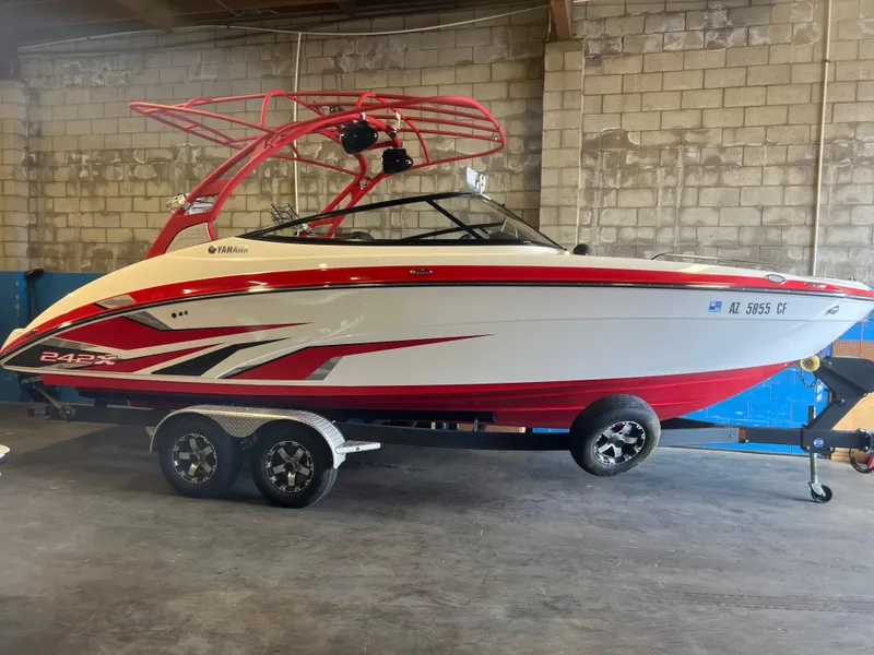 Factory Info. Sacrifice nothing with this lineup of 24-foot boats. This best-selling lineup offers everything Yamaha is known for, including Connext, the advanced technology of the E-series, and our most spacious, well-equipped swim platform. With the Yamaha total package that includes a Bimini top and custom trailer, these 24-foot boats take your experience to the next level of luxury.