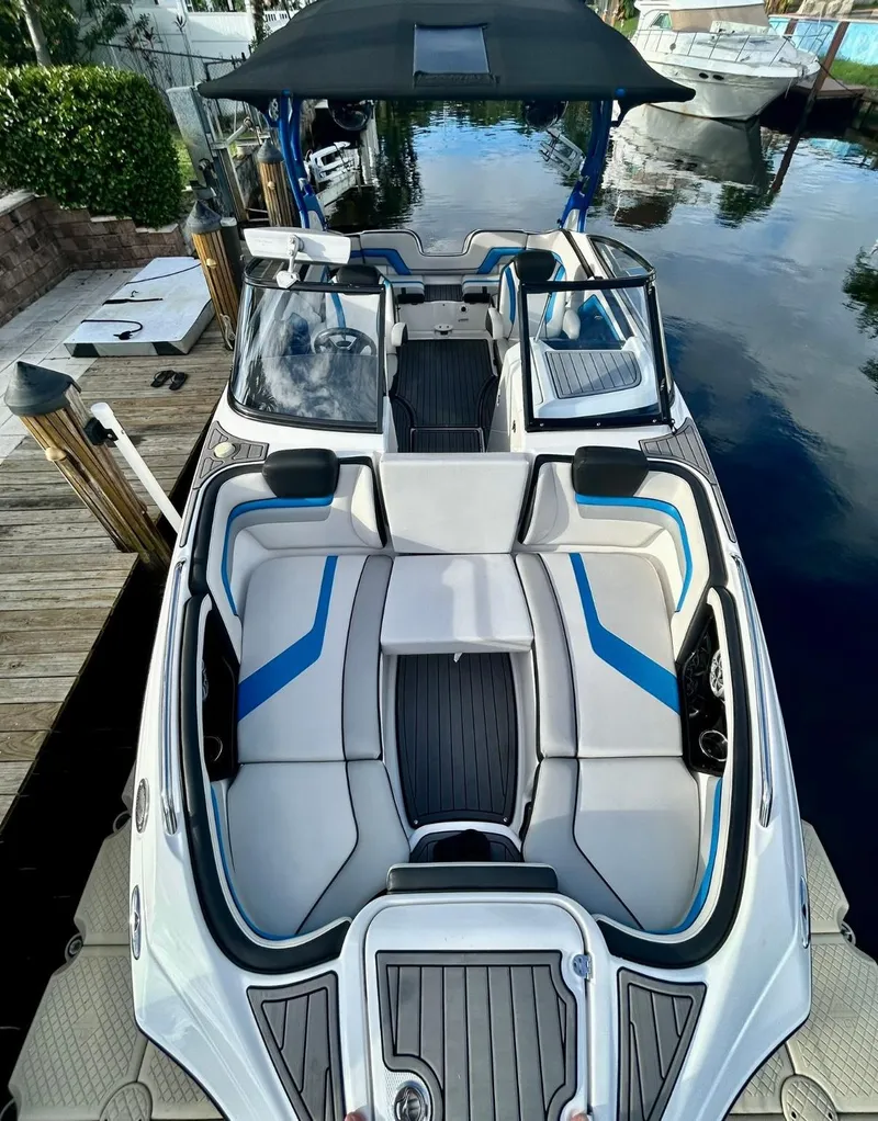 Powered by Yamaha's legendary internal propulsion system, this beauty delivers smooth, fuel-efficient performance with no exposed props, making it safer, faster, and more fun. It planes quicker, glides through shallow water with ease, and thanks to its smart design, offers an expansive swim platform - perfect for family and friends to lounge, splash, and soak up the sun. Whether you're chasing waves, cruising at sunset, or hosting a floating party, the 242X brings big energy, smart tech, and endless fun. Ready to make unforgettable memories on the water? This boat's waiting for you!