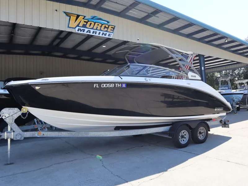 2022 Yamaha Boats 252 S, PRE-OWNED 2022 YAMAHA 252 S Performance The 2022 Yamaha 252 S is powered by twin 1.8L High Output Yamaha marine engines, giving it strong acceleration, reliable handling, and smooth performance whether you're cruising or towing water sports. With Yamaha's jet drive system, you get quick planing, shallow-water capability, and precise control at all speeds. Layout & Comfort At 25 feet, this Yamaha offers generous seating for family and friends with premium upholstery, convertible stern lounge seating, and an open bow. Yamaha's patented two-tier swim platform with transom seating makes it perfect for relaxing at anchor or gearing up for watersports. Stainless accents, marine-grade flooring, and a spacious cockpit deliver a premium on-water experience. Features This 252 S comes loaded with premium features including a stylish hardtop, upgraded marine stereo with multiple speakers, a freshwater shower, ample storage compartments, and a dinette-style cockpit table. The wraparound windshield and deep bow seating provide comfort and protection while underway. Technology Equipped with Yamaha's Connext touchscreen system, you have full control over functions like drive assist, no-wake mode, and performance settings. Integrated navigation, smartphone connectivity, and multiple charging ports make for a modern and convenient helm experience. Safety Jet propulsion means no exposed propellers, making it safer for swimmers and tow sports. High freeboard design, stainless grab rails, and non-skid flooring provide security throughout the boat. Yamaha's reliable construction and thoughtful design ensure a safe, stable ride. Specifications Year: 2022 Make: Yamaha Model: 252 S Length: 25' Engine: Twin 1.8L High Output Yamaha marine engines Seating Capacity: 12 persons Key Features: Hardtop, Connext touchscreen system, premium stereo, swim platform with transom seating