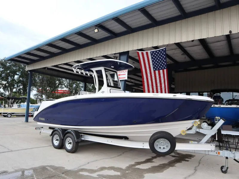 2025 Yamaha Boats 255 FSH SPORT E, The 2025 Yamaha 255 FSH Sport E is a versatile center console boat that seamlessly blends high-performance capabilities with luxurious amenities, catering to both avid anglers and leisure seekers. Power and Performance Equipped with twin 1.8L supercharged Yamaha Marine Engines, the 255 FSH Sport E delivers a combined 500 horsepower, ensuring exhilarating acceleration and top-end speed. The integration of Yamaha's E-Series features, including drive-by-wire technology and Yamaha Drive Control, enhances the boating experience by offering precise handling and customizable performance settings. Fishing Amenities Designed with the serious angler in mind, this model boasts an array of fishing-centric features: • Livewells: An 18-gallon portside transparent livewell and a 30-gallon aerated stern livewell provide ample capacity for keeping bait and catch fresh. • Rod Storage: The boat offers multiple rod storage options, including side console storage for six rods, gunwale storage for six rods, horizontal storage for eight rods, and five T-top rod holders, ensuring that all your gear is organized and within easy reach. • Tackle Storage: A dedicated storage pod equipped with Plano tackle boxes allows for efficient organization of tackle and accessories. Comfort and Convenience Beyond its fishing prowess, the 255 FSH Sport E offers a host of comfort features: • Seating: The spacious bow seating area includes snap-in cushions and a filler platform/table, while the upgraded leaning post with flip-up bolster provides versatile seating options at the helm. • Entertainment: A premium marine sound system with six standard Hertz speakers and a stern stereo remote ensures high-quality audio entertainment throughout your voyage. • Swim Platform: The integrated swim platform features upholstered cushioned backrests, a stainless-steel telescopic reboarding ladder, and a table and grill mount, enhancing the boat's recreational versatility. Advanced Technology The helm is outfitted with cutting-edge technology to enhance navigation and control: • Connext Screen: A 7-inch touchscreen display provides intuitive access to boat systems and navigation data. • Simrad Electronics: A 12-inch touchscreen display offers comprehensive navigation and fish-finding capabilities. • Yamaha Drive Control: This system allows for easy adjustment of speed and acceleration settings, including features like Cruise Assist and No Wake Mode, optimizing the boating experience for various conditions. Specifications • Length: 24 feet 6 inches • Beam: 8 feet 6 inches • Draft: 22 inches • Fuel Capacity: 111 gallons • Seating Capacity: 12 persons • Dry Weight: 4,440 pounds The 2025 Yamaha 255 FSH Sport E stands out as a formidable choice for those seeking a boat that excels in both fishing functionality and leisure luxury, all while delivering ...