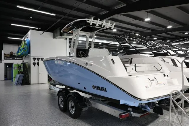 2026 Yamaha 255 FSH Sport E, This 25'5" center-console blends high-performance power with smart convenience. Twin supercharged 1.8L SVHO Yamaha engines deliver a combined 500 hp, while the jet drive system offers smooth, shallow-water handling. With a capacity for 12, a 111-gallon fuel tank, and advanced features like drive-by-wire throttle, cruise assist, Connext touchscreen, and Simrad electronics, it's perfectly suited for fishing or all-day cruising.