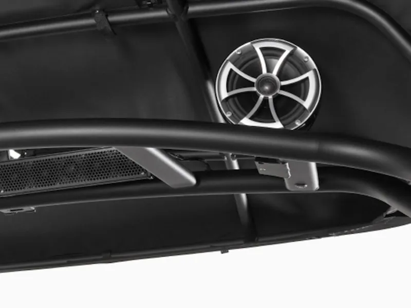 - The custom-tuned stereo system includes a sound bar, dual amplifiers and subwoofer.