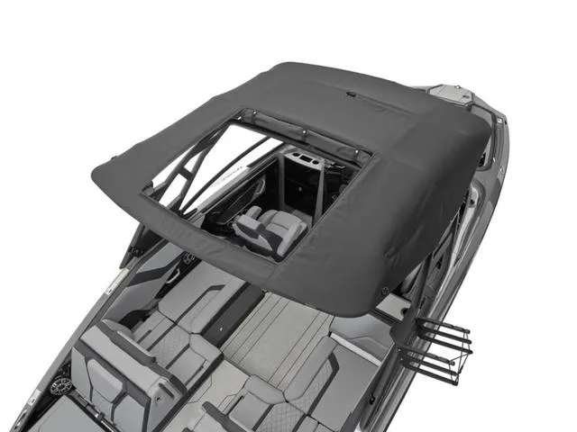- Tower & Hardware: Folding wakeboard tower with racks, extended bimini, stainless hardware, tow hook