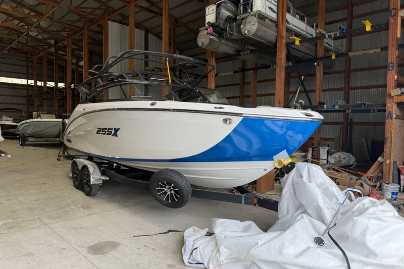The 255XE, with a combined 500 horsepower, showcases advanced technology for exceptional wakesurf performance and combines it with sleek, stylish design. Snap-in Custom Cut Marine-Grade Mat, Ski Locker, Removable Dinette Table with Pedestal - Mount at Stern, Bow Filler Inserts for Multiple Seating Configurations, Hinged Seat Cushions, Tilt Steering, Upgraded Steering Wheel, Upgraded Upholstery, Chil-Cool Vinyl Upholstery, Adjustable Captain's Chair with Flip-Up Bolster, Passenger-Side Captain's Chair, Portside Entertainment Area, Lockable Passenger Side Glove Box, Walk-Through Bow Door, Integrated Removable Cooler, Head Compartment w/ Wardrobe Storage Features, Upholstered Interior & Light, Galley with Stow-in-Place Table and Storage, Docking Lights, Courtesy Deck Lighting, Courtesy Tower Lighting, Dedicated Anchor and Rope Locker, Bow Reboarding Ladder, Upgraded Aluminum Handles & Accents, Cockpit Drainage System (CDS), LED Accent Lighting, Integrated Swim Platform, Upholstered Cushioned Seats, Upholstered Cushioned Backrests - Articulating, Stainless Steel Telescopic Reboarding Ladder, 12-Volt Outlet, Dinette Table Mount, Custom Cut Marine-Grade Mat, Stern (Wet) Storage, Helm Connext Screen (in) - 12.3, MFD w/ Maps, Yamaha E-Series Features, Drive-By-Wire Technology, Helm Switch Panels - Blue LED Lit, Wireless Charging Points - 1, Marine Speakers - (7) Premium Hertz, Tower Speakers - (2) Hertz, Stern Stereo Remote, Stern Speakers, 3 Position "No Wake Mode™" Control, Cruise Assist, Battery Setup - Dual, Rack & Pinion Steering, Quiet Cruise Technology, Integrated Ballast System, Toe-in Jet Nozzle Position, Integrated Electric Wakebooster, Articulating Keel System, Underwater Light, Displacement (per Engine) - 1812CC, Recommended Fuel - Premium Unleaded, 160 MM High-Pressure Pump, Pump Clean-Out Ports, Bow Rails, Stainless Steel Pop-up Cleats - 7, Tow Hook, Biminitm Top - Extended, Premium Windshield Frame, Aluminum Folding Wakeboard Tower with Tow Hook, Wakeboard Racks, Windshield Mirror - Billet Aluminum, Painted Trailer with Swing-Away Tongue, **the Dealership is not Responsible for any Errors or Omissions Made in the List of Standard Features.**