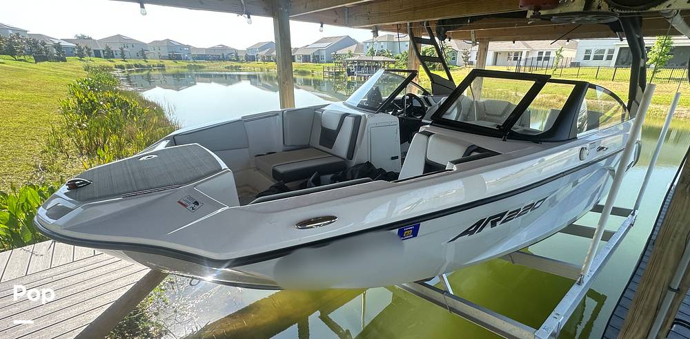 This single owner, freshwater 2023 AR 220 has twin TR-1 Yamaha engines, wakeboard tower, Simrad GPS and can easily accommodate 10 passengers.