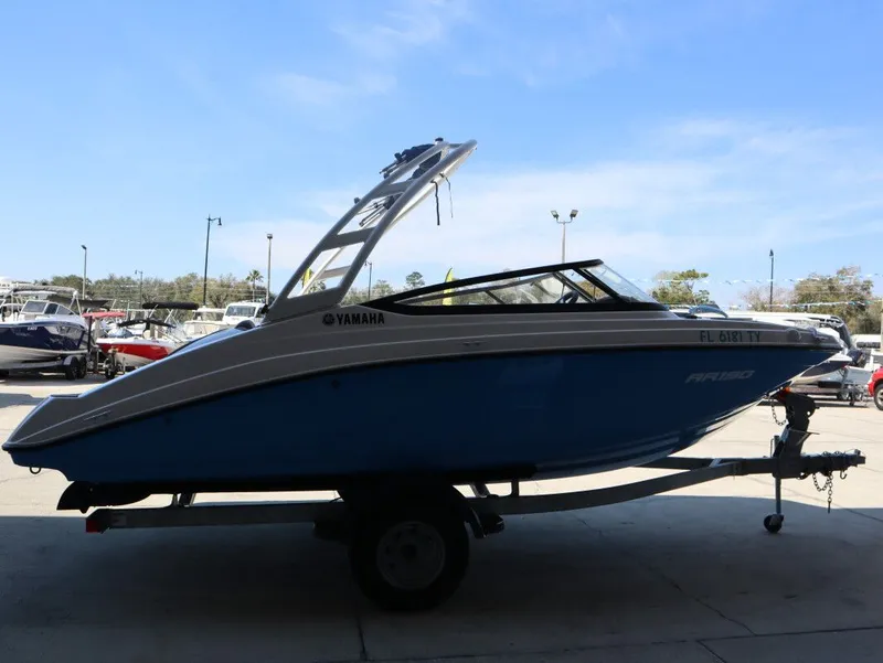 2024 Yamaha Boats AR190, USED 2024 YAMAHA AR190 JET BOAT | BLUE | FOR SALE UPGRADED TRAILERBIMINI TOPAM/FM STEREOThe 2024 Yamaha AR190 delivers the perfect blend of sporty performance and family-friendly fun in a compact, easy-to-own jet boat package. Powered by Yamaha's proven 1.9L High Output marine engine, this boat delivers quick acceleration, strong mid-range pull, and excellent fuel efficiency. The jet propulsion system provides smooth, confident handling with no exposed propeller, making it ideal for watersports, sandbar days, and cruising with peace of mind. Lightweight and responsive, the AR190 planes quickly and handles tight turns with ease. LAYOUT & COMFORT The AR190 maximizes every inch of its 19-foot footprint with a smart, social layout. The wraparound cockpit seating keeps everyone connected, while the signature Yamaha swim platform creates the ultimate hangout zone at the water's edge. The open bow offers comfortable forward seating with backrests, and the deep cockpit design enhances passenger security and comfort. Whether you're towing, cruising, or relaxing at anchor, the layout is built for all-day enjoyment. FEATURES • Signature Yamaha swim platform with upholstered backrests • Integrated swim ladder for easy water access • Adjustable captain's chair with bolster • In-floor storage for gear and water toys • Bimini top for sun protection • Tow hook for watersports • Snap-in marine-grade carpet • Walk-through windshield • Multiple cup holders throughout TECHNOLOGY • Yamaha Connext touchscreen control system • Bluetooth capable marine audio system • Digital helm display with engine data • Push-button start/stop • No-wake mode for controlled slow-speed operation SAFETY • Jet propulsion system - no exposed propeller • Yamaha's clean-out port system • Deep cockpit design for added security • Integrated stern reboarding ladder • Yamaha's award-winning build quality • High freeboard for passenger confidence SPECIFICATIONS Length Overall: 19'5" Beam: 8'2" Draft: 15" Dry Weight: Approx. 2,375 lbs Fuel Capacity: 40 gallons Engine: Yamaha 1.9L High Output Marine Engine Propulsion: Jet Drive Seating Capacity: 8 persons Hull Material: Fiberglass Color: Blue Boating season is still in full swing, and best spent on a boat from VForce Marine - Your Marine Superstore.