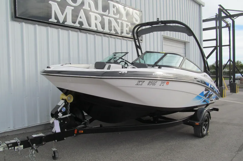 Get more for less. Yamaha's supercharged 1.8 liter Super High Output Marine engine and jet propulsion system is packed with power, fuel-efficiency and reliability. Handling is quick and nimble thanks to Yamaha's patented Articulating Keel. Comes standard with a forward swept tower, open lounge design, trailer and Bimini top.
