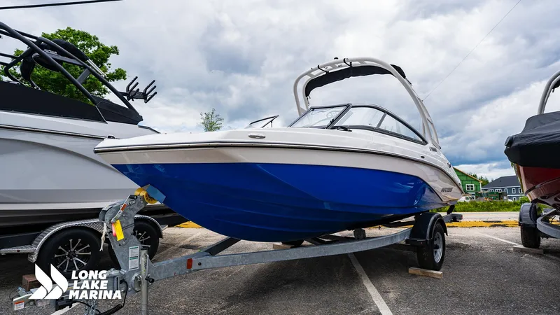 2024 Yamaha AR195, Elevate your boating experience with the 2024 Yamaha AR195, a versatile 19-foot jet boat designed for adventure and enjoyment on the water. Powered by a robust 1.8-liter engine, this model delivers impressive performance and agility, perfect for water sports enthusiasts and casual cruisers alike. The spacious layout features comfortable seating for up to eight passengers, making it ideal for family outings and gatherings with friends. Equipped with premium audio and a sleek design, the AR195 ensures every trip is filled with fun and entertainment. The innovative wake and surf features allow for customized water sports experiences, while ample storage keeps all your gear organized. With its stylish aesthetics and cutting-edge technology, the 2024 Yamaha AR195 is ready to create unforgettable memories on the water.