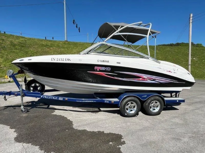 2007 Yamaha AR210, 2007 Yamaha AR210 Twin Yamaha 110HP Marine Engines Rear Boarding Ladder Bow Ladder Watersports Tower w/ Bimini Top & Boot Ski Locker Kenwood Audio Head Unit Depth Finder Snap-In Cockpit & Bow Carpet 9 Passenger Capacity Dual Axle Trailer w/ Spare & Brake-Away Tongue