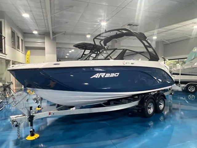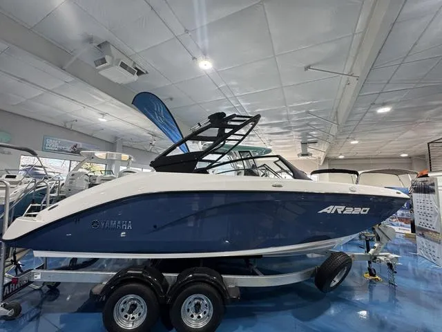 2025 Yamaha AR 220, The 2025 Yamaha AR220 is a 22-foot jet boat that offers a blend of performance, versatility, and convenience, making it an excellent choice for watersports enthusiasts and families alike. Powered by twin TR1 Yamaha marine engines, the AR220 delivers robust performance for a variety of on-water activities. Available in sleek Black or elegant Slate Blue, this boat combines style with functionality. The package includes a galvanized trailer, ensuring durability and ease of transport.