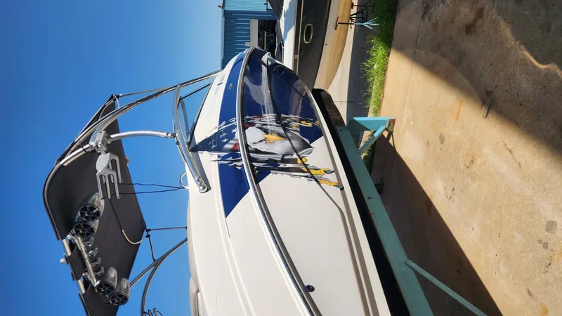 Has a nice Bimini top with Rocket launchers, stereo and speakers.