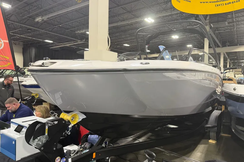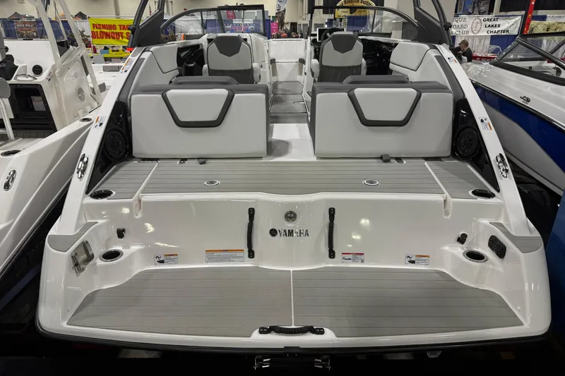 Snap-in Marine-Grade Woven Floor Mat, Ski Locker, Removable Dinette Table with Pedestal - Mounts at Cockpit and Stern, Bow Filler Inserts for Multiple Seating Configurations, Hinged Seat Cushions, Tilt Steering, Adjustable Captain's Chair with Flip-up Bolster, Passenger-Side Captain's Chair, Portside Entertainment Area, Lockable Passenger Side Glove Box, Walk-Through Bow Door, Integrated Removable Cooler, Head Compartment w/Light, Courtesy Deck Lighting, Dedicated Anchor and Rope Locker, Bow Reboarding Ladder, Upgraded Aluminum Handles & Accents, Cockpit Drainage System (CDS), Integrated Swim Platform, Upholstered Cushioned Backrests w/Storage, 12-Volt Outlet, Stainless Steel Telescopic Reboarding Ladder, Dinette Table Mount, Marine-Grade Mat, Stern (Wet) Storage, Factory Installed Swim-up Seat Bracket, Helm Connext Screen (in) - 7, MFD w/ Maps, Wireless Charging Points - 1, Marine Speakers - 6, Stern Stereo Remote, Stern Speakers, 3 Position "No Wake Mode™" Control, Cruise Assist, Battery Setup - Dual, Rack & Pinion Steering, Quiet Cruise Technology, Articulating Keel System, Yamaha Marine Engine - Twin 4-Cylinder, 4-Stroke, 1.9 Liter High Output Yamaha Marine Engines, Displacement (per Engine) - 1898cc, Recommended Fuel - Regular Unleaded, 155 MM High-Pressure Pump, Pump Clean-Out Ports, Bow Rails, Stainless Steel Pop-up Cleats - 7, Tow Hook, Biminitm Top, Aluminum Folding Wakeboard Tower with Tow Hook, Windshield Mirror, Painted Trailer with Swing-Away Tongue, **the Dealership is not Responsible for any Errors or Omissions Made in the List of Standard Features.**