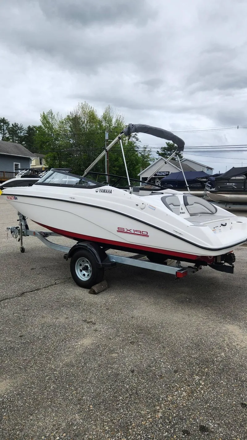 2024 Yamaha SX190 with a 2025 Shoreland'r galvanized trailer and 200 horsepower. This boat was just recently purchased and only has 4.7 hours of use, all in fresh water. The boat comes with a fully transferable Yamaha Extended Service Warranty and is fully covered until 1/28/2030. This boat is ready for the water and comes with storage throughout, safety vests, anchor & rope, docking lines, throwable cushion, fire extinguisher, snap-in carpet, Sea Dek on the swim platform, anchor storage locker, ski locker, bimini top, bow and cockpit canvas, swim ladder, nice swim deck with cup holders and stern seating. This boat can be seen at our Alton Bay location!