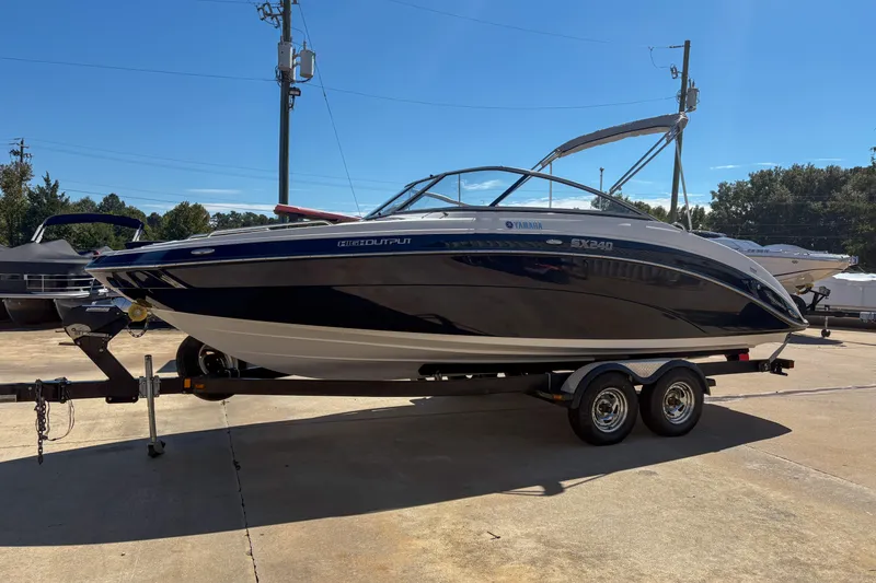 The 2013 Yamaha SX240 HO is a premium 24-foot jet boat built by Yamaha, designed for both sporty performance and comfortable family cruising.