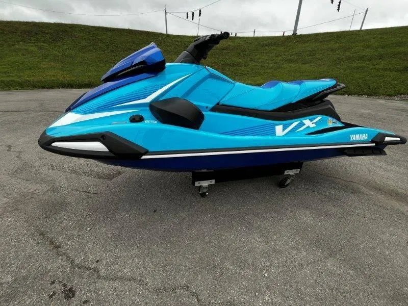 2025 Yamaha Waverunner VX Deluxe w/ Audio, 2025 Yamaha Waverunner VX Deluxe w/ Audio Unbeatable Value Premium features at an affordable price Available Colors Cyan/Azure Blue & Torch Red Rider Capacity (people) 1-3 Length 11'1" Width 4'1" Height 3'11" Dry Weight (lbs) 686 Fuel Capacity (gal) 18.5 Storage Capacity (gal) 30.1 Yamaha Marine Engine 3-cylinder, 4-stroke TR-1 High Output Yamaha Marine Engine Displacement 1049CC Fuel Capacity (L) 70 Recommended Fuel Regular Unleaded 155 MM High-Pressure Pump Oil Capacity per Engine (L) 3.4 RiDE® T.D.E Reverse Assist Mode Factory Installed Yamaha Audio System Optional Connext Screen (in) 4.3 Connext Screen Security Drive Control X(2step) Bluetooth Capable Text/Call notifications Drive Control/Low RPM Mode Fuel Gauge Connext Screen Cruise Assist/No Wake ModeTM Touchpad Control Automatic Bilge Molded Cooler Storage in Bow Multi-Mount System 2 Dual Mirrors Glove Box Watertight with USB & 12V Outlet with Accent Lighting Seat 2-piece Water-resistant Under-seat Storage Pull-up Cleats 4 Reboarding Step Footwell Drains Deck Mats Tow Hook upgraded Maintanence-free Battery