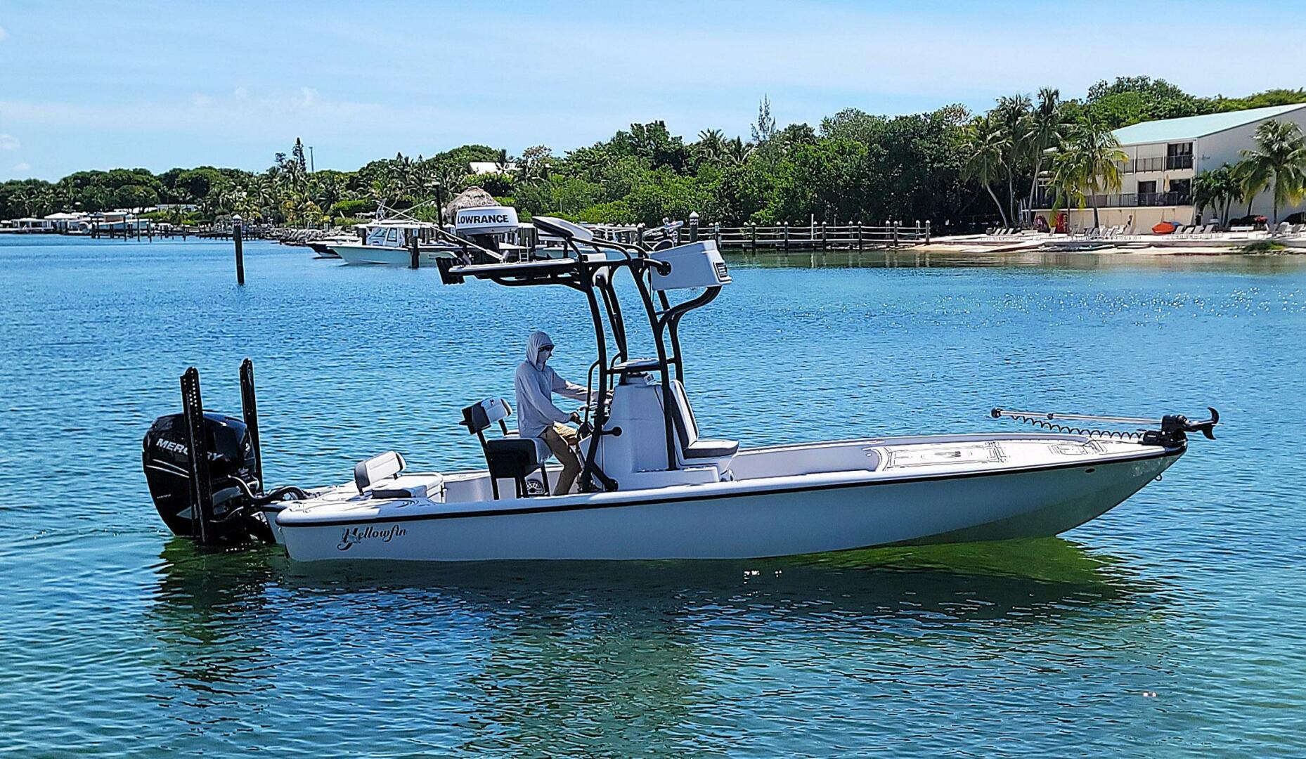 This 24' Yellowfin is the ultimate shallow water fishing platform, purpose-built to chase fish where others can't go. It's equipped with three large livewells, making it perfect for carrying a large amount of live bait and keeping it healthy throughout the day. For stealthy shallow-water anchoring, it features dual Power-Poles, and up front, a Power-Pole trolling motor provides precise boat control and quiet maneuvering on the flats. The second station tower offers excellent visibility for sight fishing and safely running in skinny water, while also serving as a great elevated casting platform. With its shallow draft, wide open layout, and serious bait capacity, this Yellowfin is ready to fish.