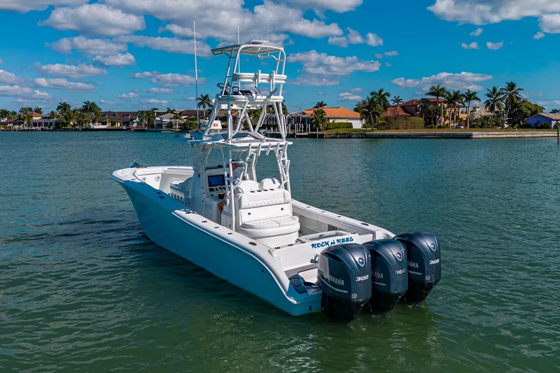 Introducing the remarkable 2018 Yellowfin 36 Offshore, a stunning center console boat that perfectly blends performance and style. With an overall length of 36.67 feet, this vessel is designed for both adventure and comfort on the water. Its deep Vee hull, crafted from durable fiberglass, ensures a smooth and stable ride, making it ideal for offshore excursions. Powered by triple Yamaha outboard engines, each delivering an impressive 300 horsepower, the ROCK N REEL is built for speed and agility. With 1400 hours of experience under its belt, this boat promises reliability and excitement for your next journey. Equipped with a well-appointed head, this boat offers convenience for extended outings. The thoughtful design and quality craftsmanship make the Yellowfin 36 Offshore a standout choice for those seeking an exceptional boating experience. Full tower with second helm, electronics, and new canvas throughout vessel. Embrace the thrill of the open water with this extraordinary vessel!