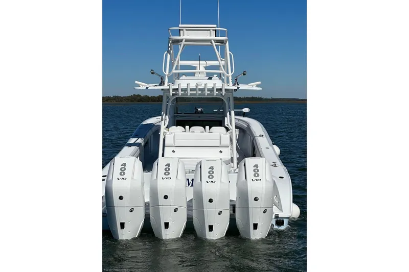 This 2024 39' Yellowfin is powered by Quad Mercury V10 400s with less than 200 hours. She is equipped with every option to enjoy a day on the water. She is ready to troll the ledge with the carbon fiber outriggers or work a reef using the GPS anchor lock with the 36v Rodan Trolling Motor. Any angler will be impressed with her spotting station, CHIRP, Sideview and Clearview Transducers, 5 tackle storage lockers, 2 live wells, 16 gunnel mounted rod holders, 7 rocket launchers, kill boxes, and 36v Trolling motor. She also has an electric head allowing you to stay out longer.