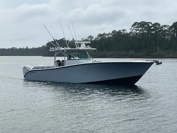 The 42 Yellowfin was the first oversized center console to appear in the market. It continues to set the standard for what a muscular, no holds barred center console should be. Tournament winning credentials, fully cored composite construction, highly efficient layout, and the ability to run hard in severe conditions. High performance stepped hull to reduce drag and friction. Rod holders everywhere, and an excellent cabin space. This 42 Yellowfin is one of a kind due to its custom seating and taller cabin for additional head room! Originally built as a yacht tender, it has been kept under cover 90% of its life and it shows like a considerably newer boat! This 42 Yellowfin would make a perfect Bahamas boat or for transporting people as it seats (10) people aft of the helm. Freezer under rear facing seat along with a 50 gallon live well. Take seats out when you want to fish. This boat has been fished under half a dozen times; this is not your average, beat up, fished hard Yellowfin! Preferred triple Yamaha 425hp motors were installed in 2020 and only have 330 hours!