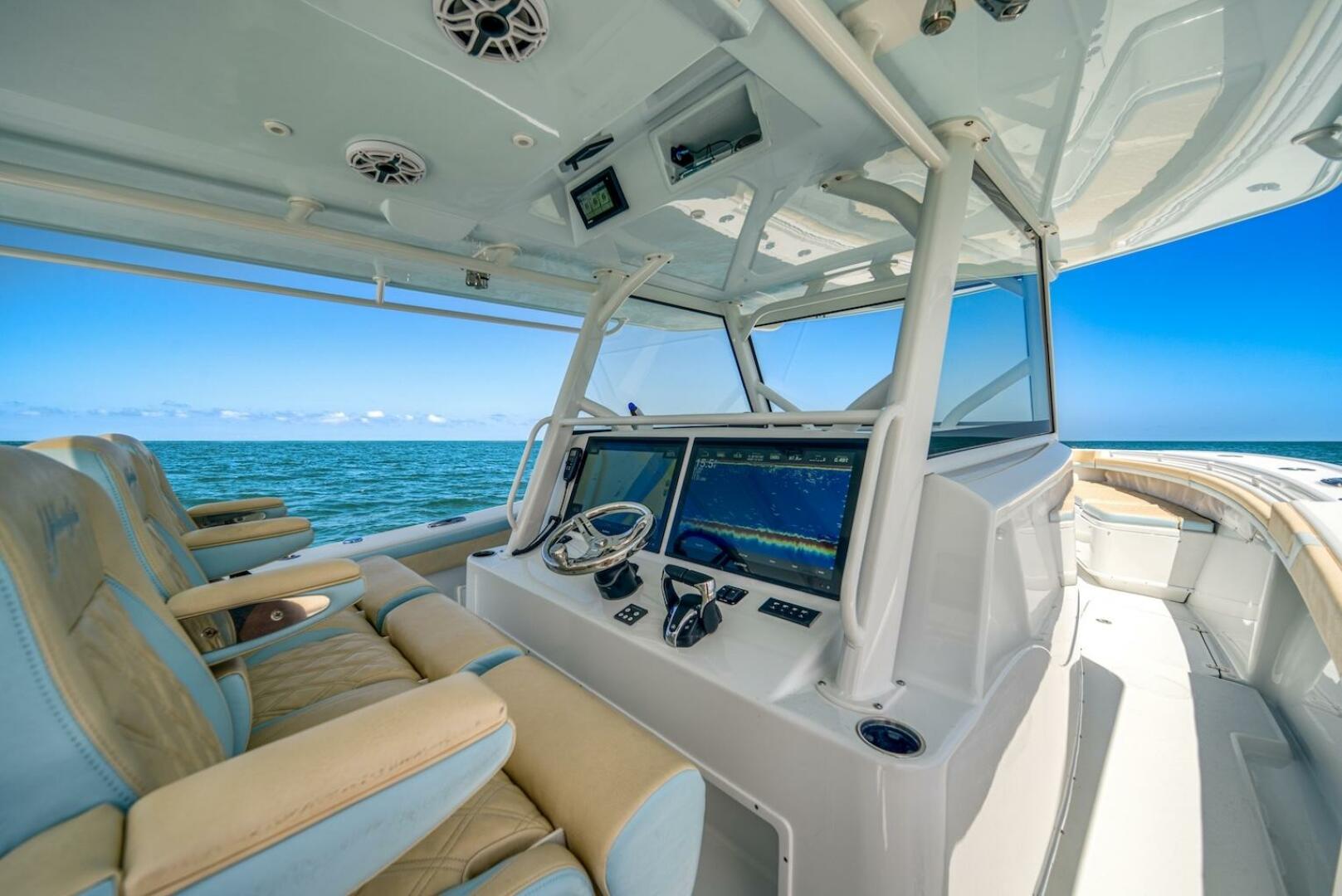 Genesis is a well-maintained, single-owner 2022 Yellowfin 42 Center Console. With an aggressive deep-V entry and an efficient stepped hull design, the 42 Yellowfin is highly regarded as one of the best riding large center consoles on the market. She is powered by triple Yamaha 425HP engines and is nicely equipped with a full suite of Garmin electronics with 24" MFD's, upgraded flush mount transducer, dual row seating, collapsable carbon fiber outriggers, and much, much more.