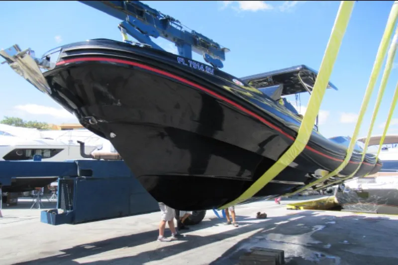 Twin Suzuki 350s(450hrs) push this performance rib over 65 mph