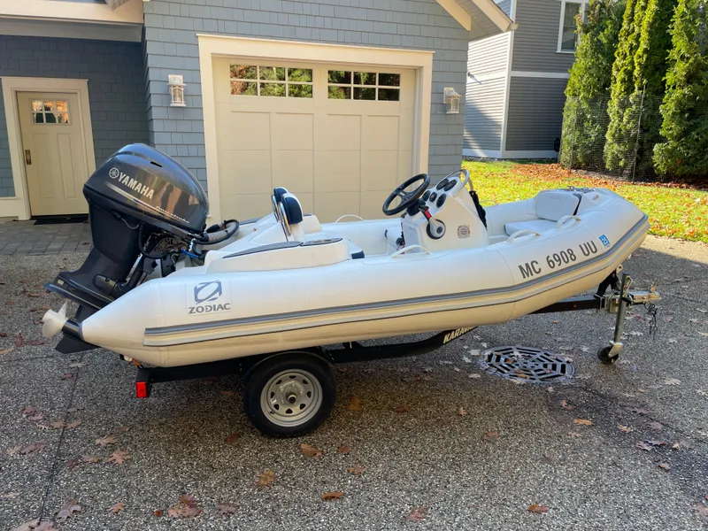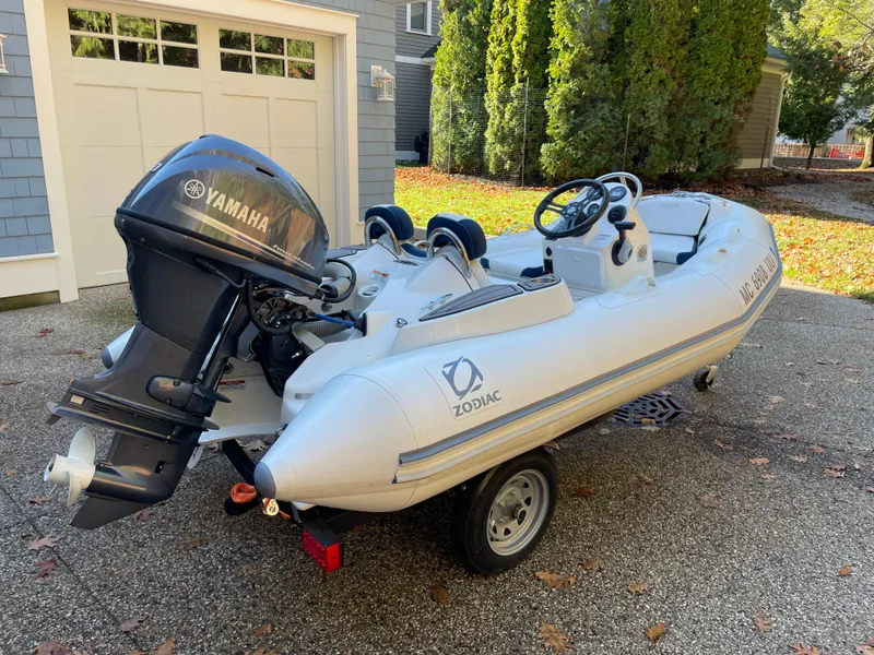 This 2022 Zodiac Yachtline Deluxe NEO features white Hypalon tubes, cup holders, SeaDek floors, and is ready to go! The 40hp Yamaha provides plenty of power and has only 37 hours.